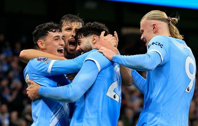 曼城排出433阵型。福登、哈兰德和多库组成进攻三叉戟。伯纳多-席尔瓦、尼科-冈萨雷斯和谢尔基搭档3中场。努内斯、鲁本-迪亚斯、格瓦迪奥尔和尼科-奥赖利4后卫首发出战。多纳鲁马担任首发门将。马尔穆什、萨维尼奥和赖因德斯坐在替补席待命。