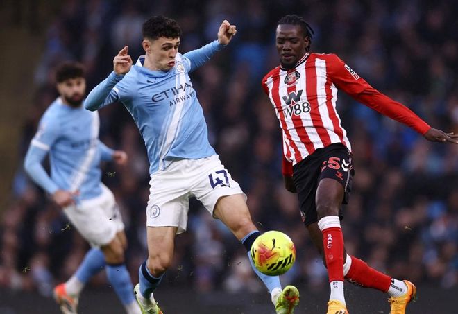 下半场易边再战。第52分钟,多库内切兜射远角,皮球击中立柱弹出。福登随即补射,结果被挡了出去,他感到非常难以置信。2分钟后,曼城差一点丢球。幸好多纳鲁马表现神勇,化解了对手的单刀机会。第59分钟,哈兰德错失良机,他在门前的射门被头球解围。6分钟后,曼城再次进球。谢尔基插花脚传中,福登头球顶进。补时阶段,奥尼安恶劣铲人犯规,被红牌直接罚下。最终,曼城3-0完胜桑德兰。
